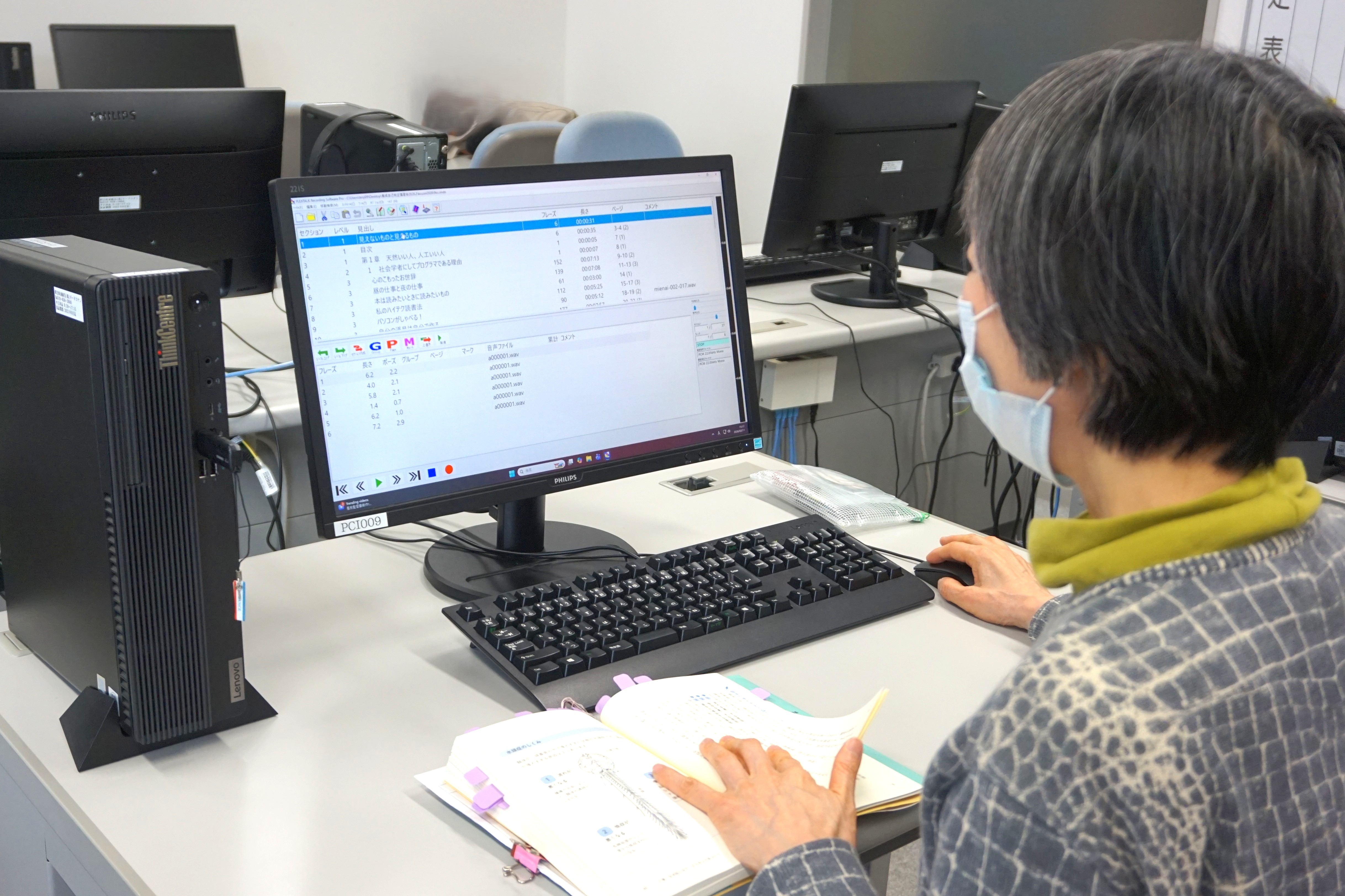 2.データを、パソコンのデイジー編集ソフトに取り込み、本の見出し入力やページ付けなどの編集をする